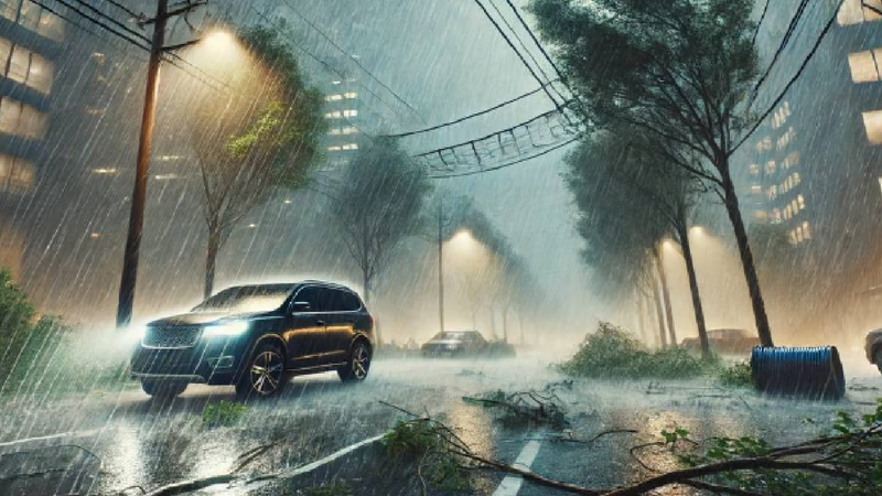 „- În caz de ploi abundente, adăpostiți-vă într-o clădire sau într-un autovehicul amplasat departe de fire electrice și copaci care pot cădea.